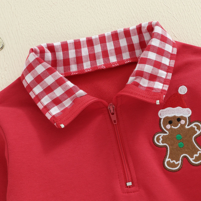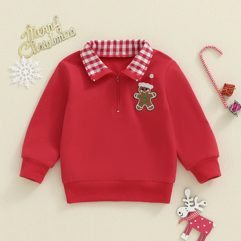 Wrap your little boy in warmth and holiday spirit with this fun sweatshirt. It showcases a cute plaid collar and festive embroideries. Ideal for celebrating the season and keeping cozy during colder days, it brings joyful style to any winter outfit.