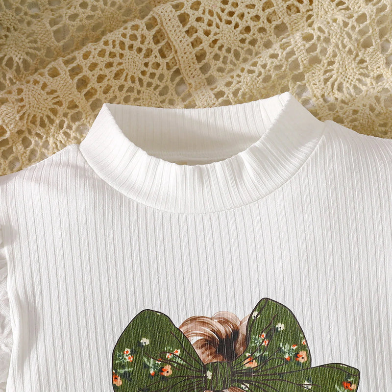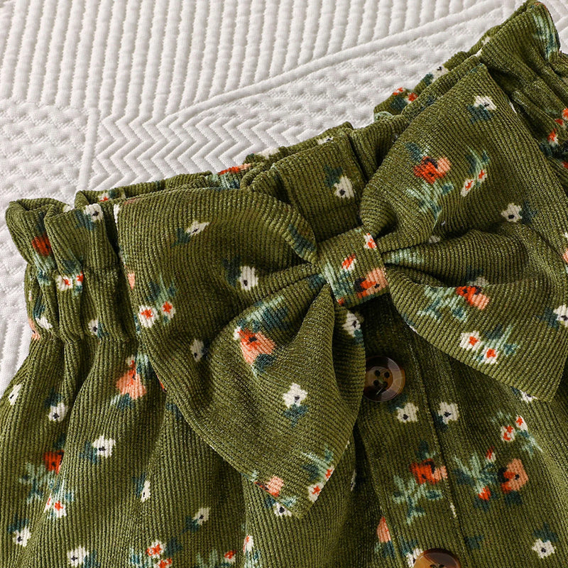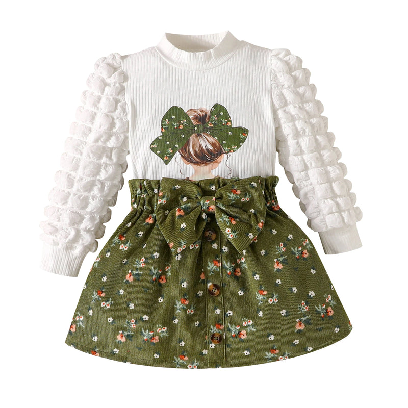 This elegant white and green long-sleeve set, adorned with delicate mini florals, is ideal for your little fashionista. It beautifully combines refined charm and graceful style, turning each day into a fashionable occasion for your baby girl.