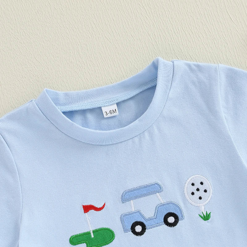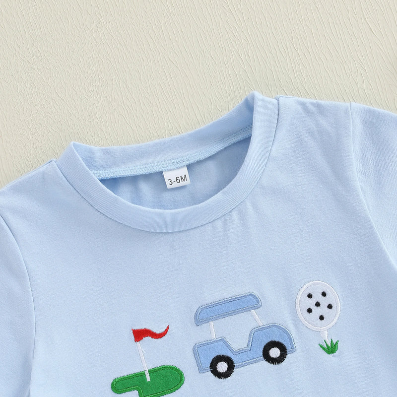 Your little guy will look absolutely dapper in this fun checkered set! Featuring a vibrant blue shirt paired with charming green plaid shorts, it's the ultimate outfit for golf outings and weekend adventures.