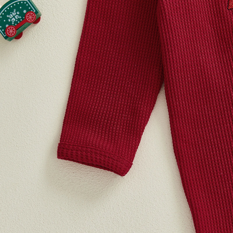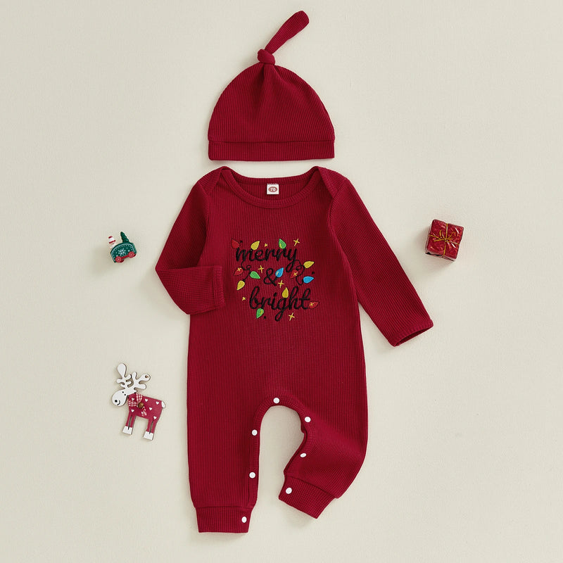 Your baby boy will love this merry and bright jumpsuit and beanie combo! It will keep him warm and cozy, while the festive design brings holiday cheer perfect for celebrations and cute photos!