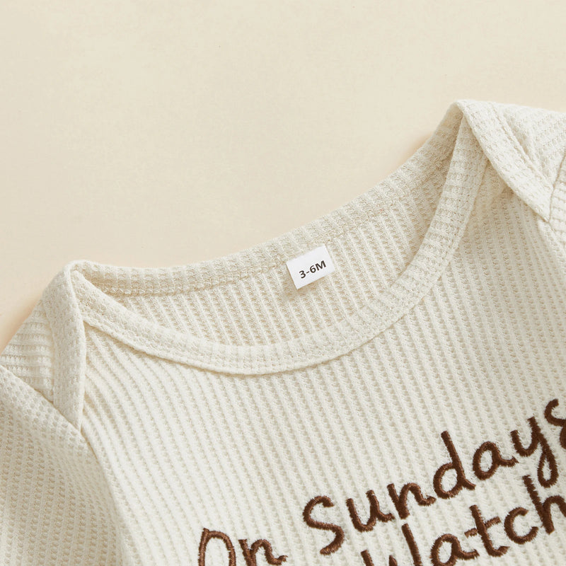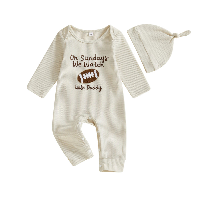 Ideal for Sundays packed with touchdowns and delicious treats, this jumpsuit ensures your baby boy stays comfy and game-ready alongside dad.