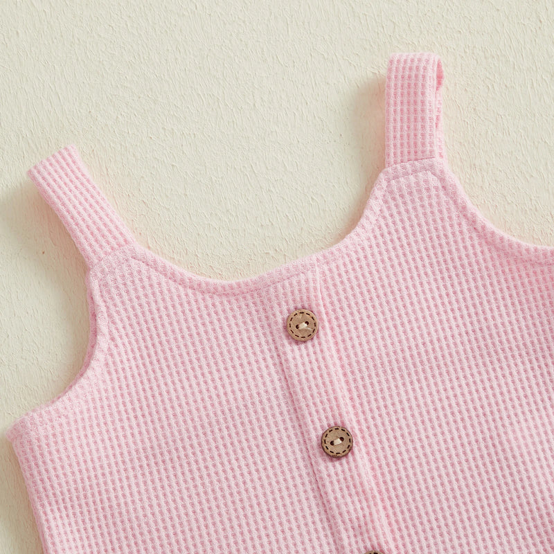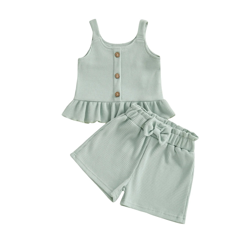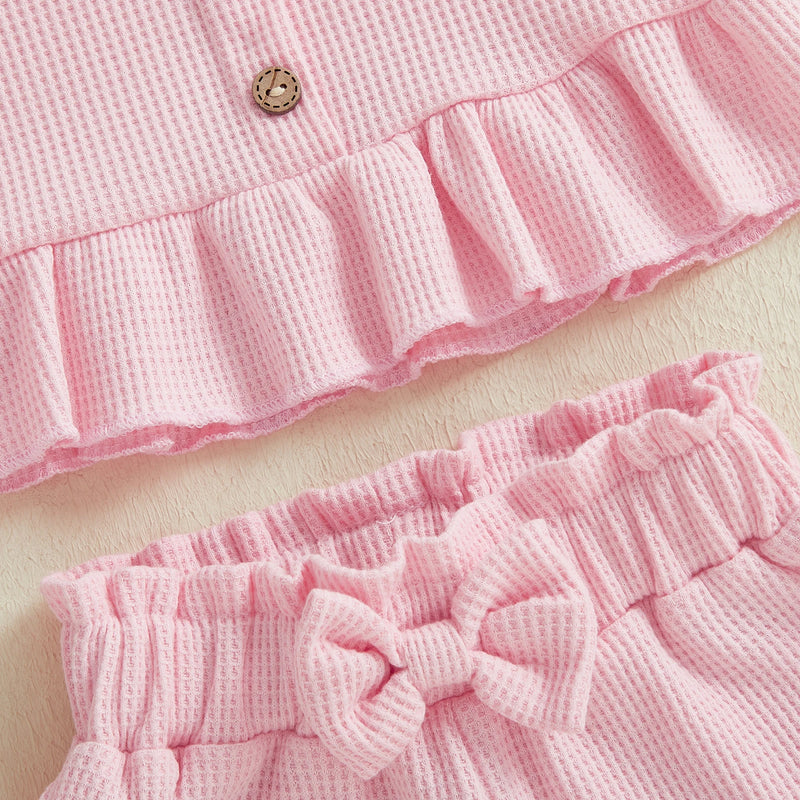 This outfit is the ultimate summer essential for little fashionistas who deserve to look as amazing as they are. Adorned with playful ruffles and an irresistible bowtie detail, your baby girl will turn heads wherever she goes.