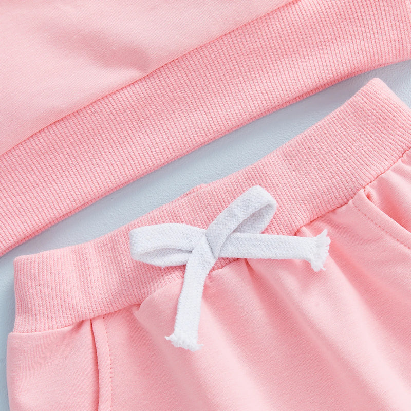Your baby girl will look sweet and comfy in this fun-filled set bursting with plush hearts and endless charm. Perfect for Valentine's Day and spring adventures, it's available in cheerful beige or pretty pink.