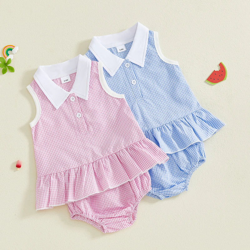 This delightful two-piece set brings together a cute collared top with playful ruffles and coordinating plaid shorts. Perfect for sunny days at the park, family gatherings, or anywhere adventure calls, she'll feel amazing and look picture-perfect. Comfort meets personality in this irresistible summer essential!