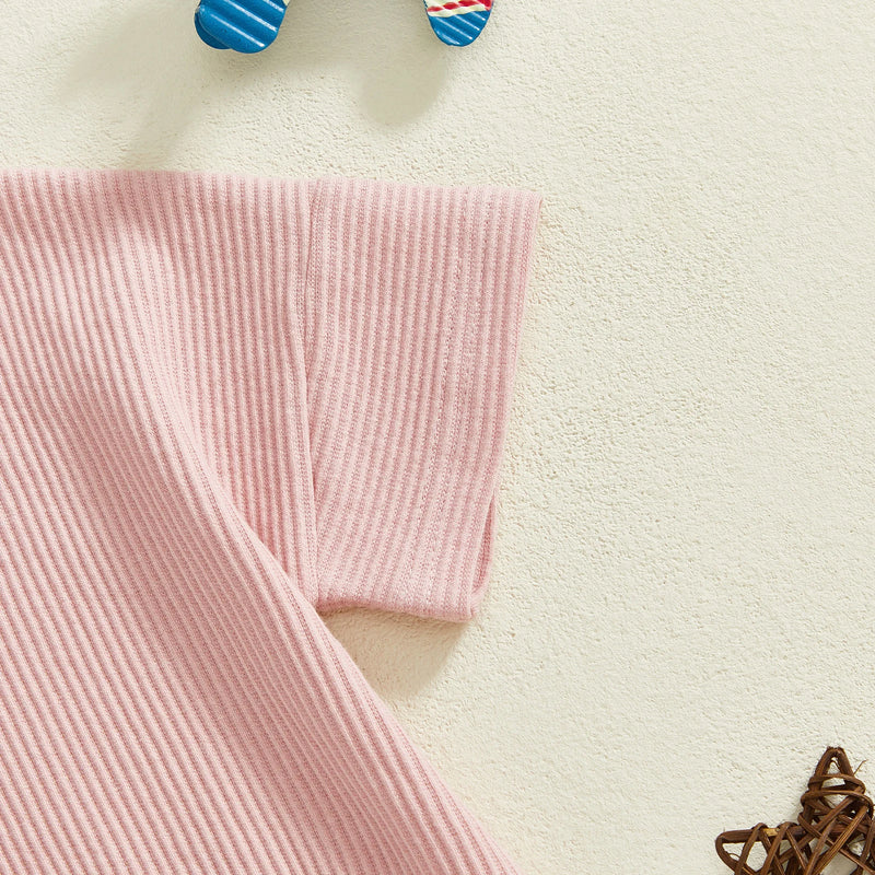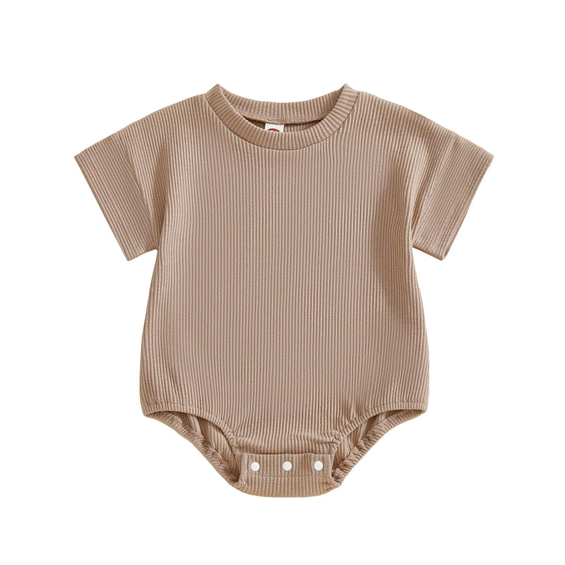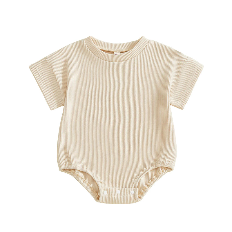Light and airy ribbed onesie in four sweet pastel colors. Perfect for keeping your little one cool and comfy all summer long.