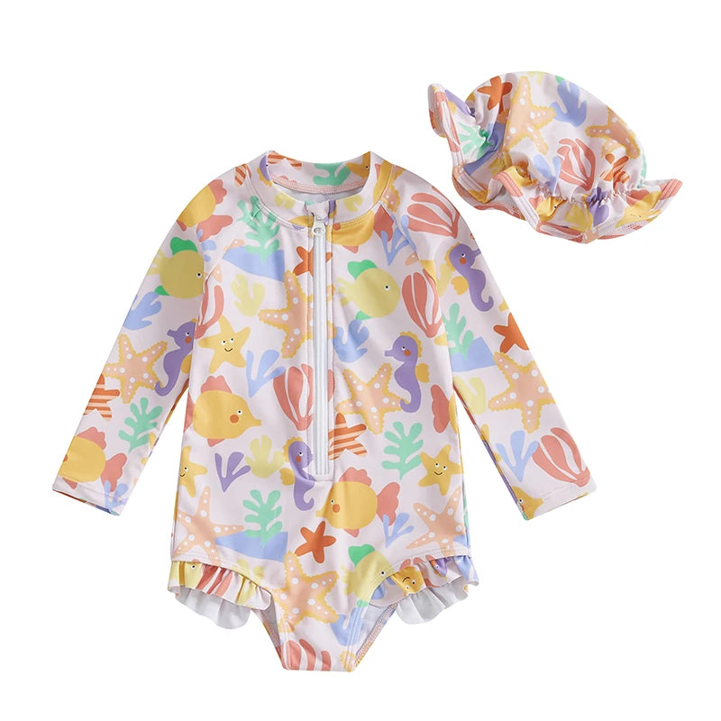 Let your little one make a splash in this charming swimsuit with cheerful florals, whimsical fishes, or vibrant fruit designs that adds personality to every sunny outing! It transforms ordinary days into memorable moments of pure joy.
