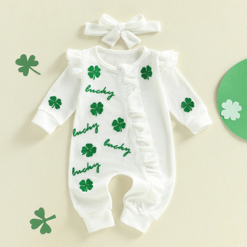 Lucky little one! Whether she's celebrating St. Patrick's Day or just want to sprinkle a little luck into her everyday adventures, this jumpsuit is the ideal choice. Easy to dress in and delightful to look at, it's a wardrobe essential that brings joy to playtime and cuddles alike.