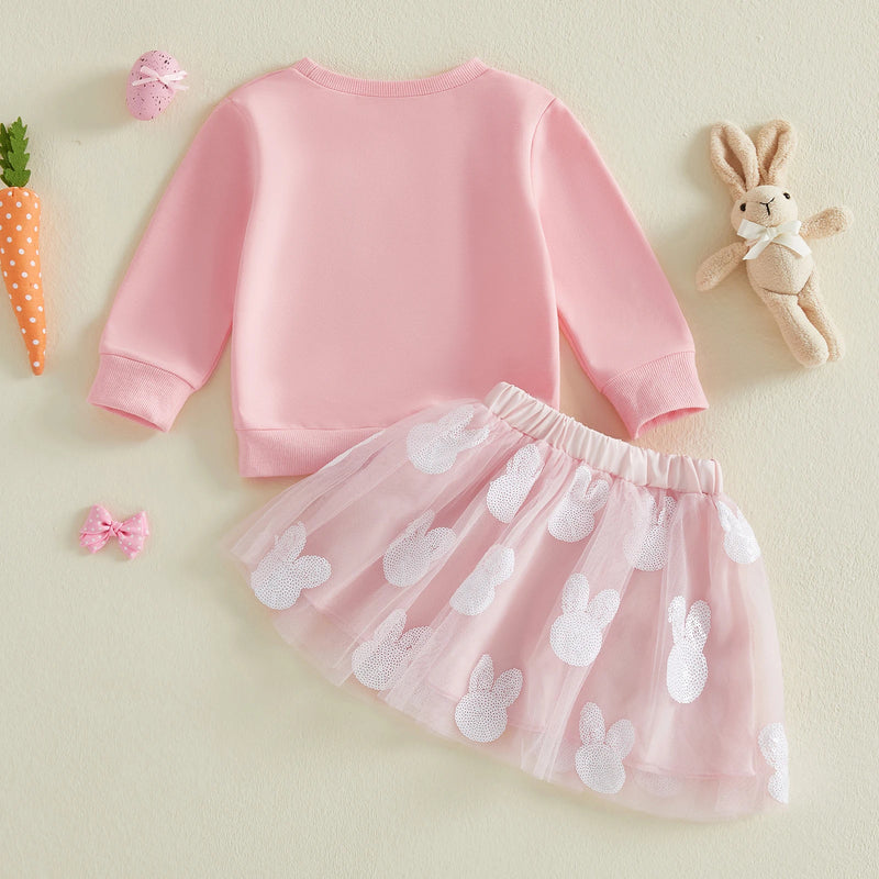 This adorable pink bunny outfit features shimmering sequins and cute bunny details perfect for spring, fall, and winter. A playful, sparkly set that's ideal for any occasion.