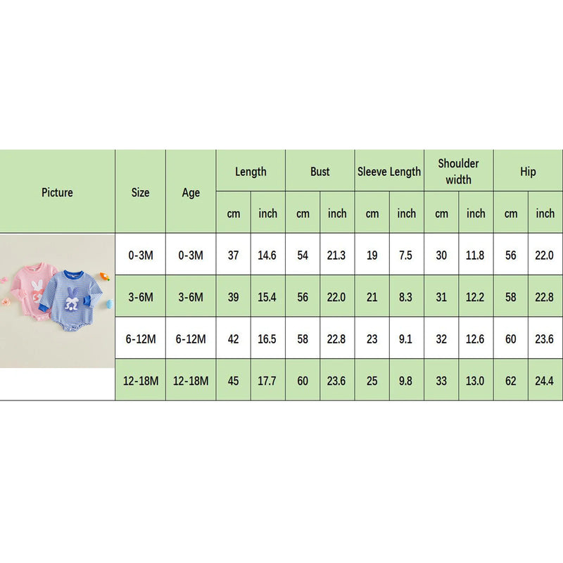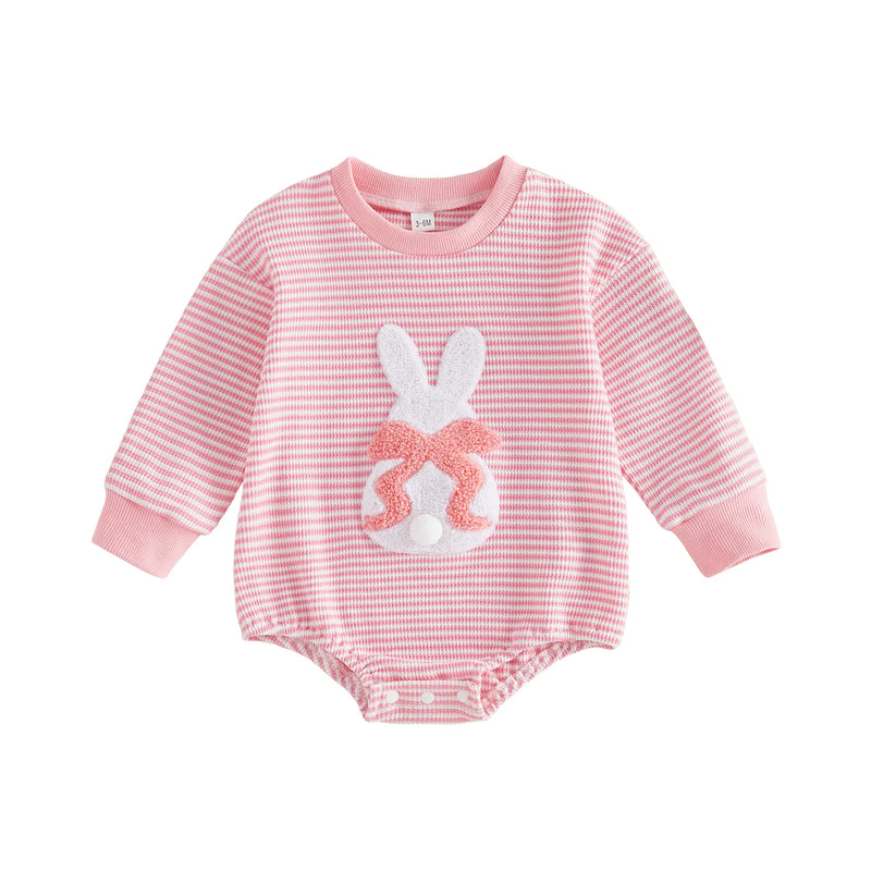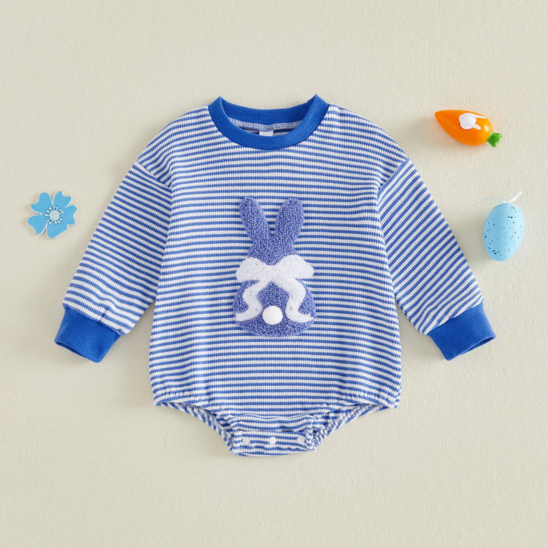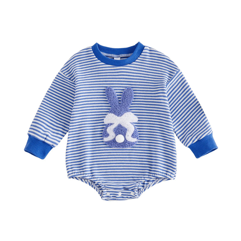 This charming striped long-sleeve onesie features an adorable embroidered bunny design, perfect for Easter celebrations or everyday wear. Crafted for both baby girls and boys, it combines soft comfort with playful style that makes it an instant wardrobe favorite. Ideal for creating memorable holiday moments and adding a touch of whimsy to your little one's collection.