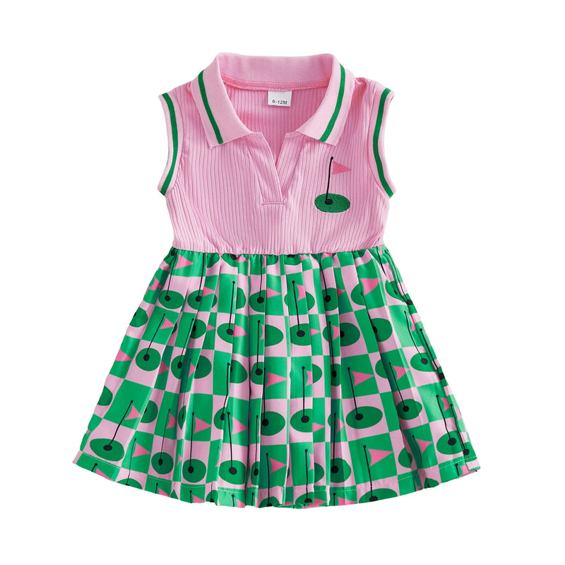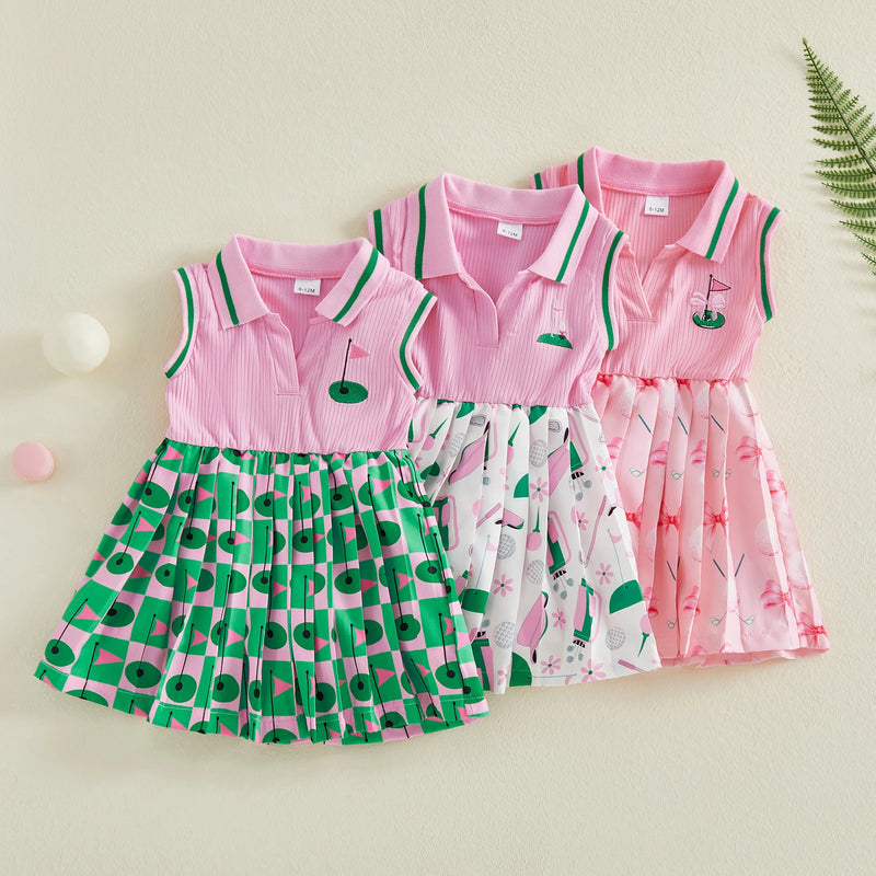 Swing into style with this adorable pleated dress designed for the modern sporty girl! Featuring a fun golf-inspired print, this dress combines classic preppy charm with athletic flair. The pleated silhouette creates a flattering, dynamic look perfect for playdates or special occasions.