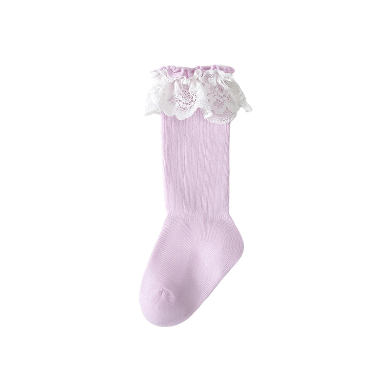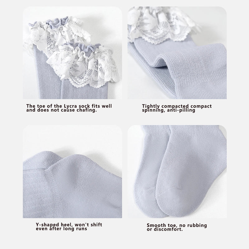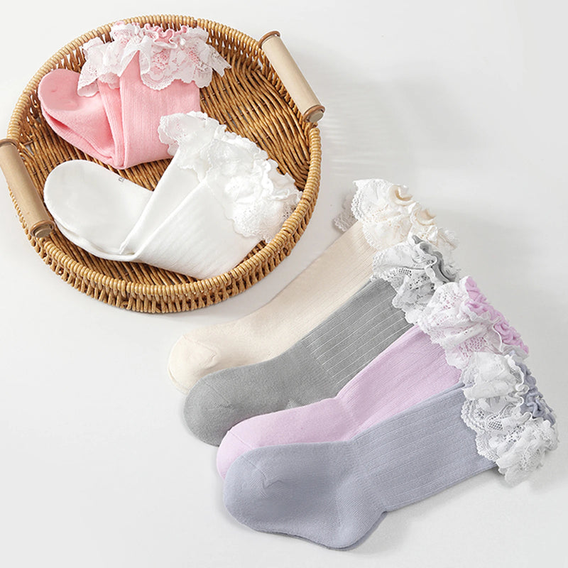 These charming knee-high lace socks blend comfort with style, making them ideal whether she's dressed up for a celebration or enjoying a cozy day at home.